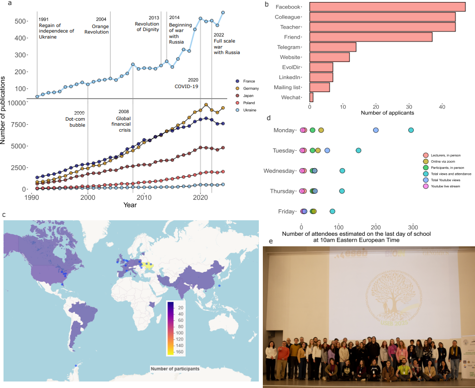 USEB 2025 provided an intensive five-day educational program for students, young and senior researchers. The school focused on delivering up-to-date knowledge in evolutionary biology, offering hands-on training in modern research techniques, and fostering international collaborations. Twenty-six speakers from France, the United Kingdom, the United States, Japan, the Netherlands, Romania, Ireland, Poland, and Ukraine. The program featured workshops on molecular biology, bioinformatics, phylogenetics, career development, and scientific writing.